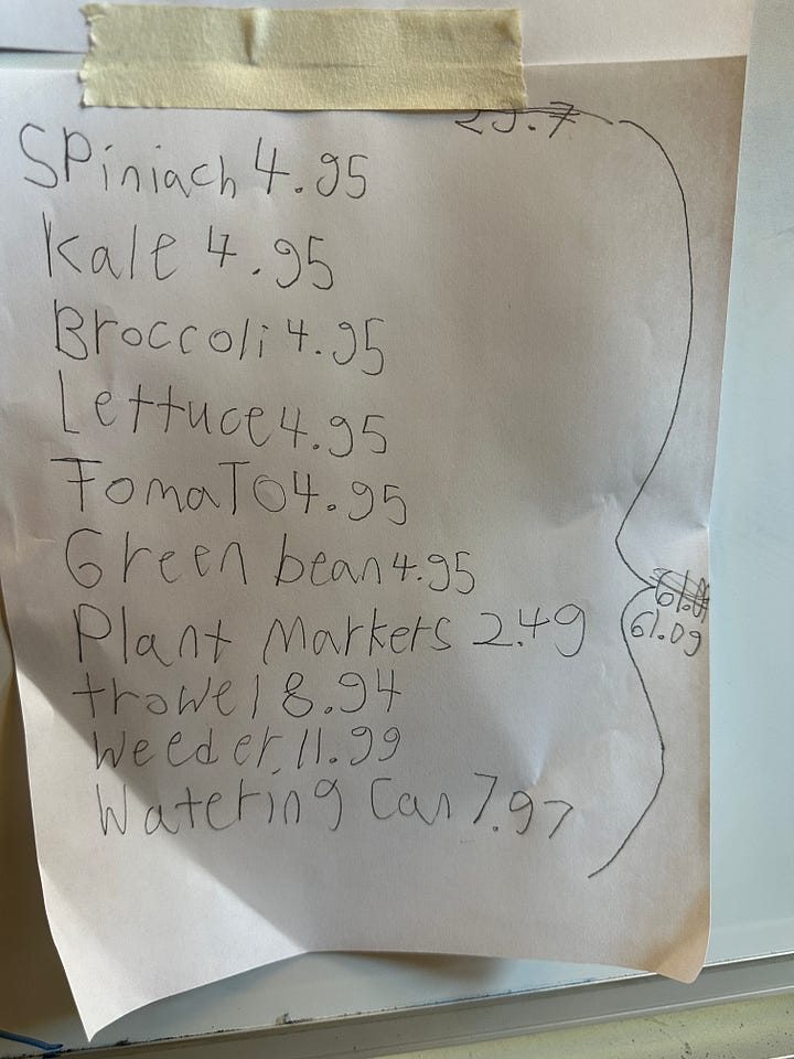Present a juicy real-life question e.g. How much does it cost to feed your family for a week? This is not “real life” the way a textbook puts words and numbers in a sentence together to make a problem feel more relevant, e.g. “Susan has 5 apples.” This is real in that you are guaranteed to need to figure this out one day. Doesn’t have to be today, but it is authentic in a way that most math problems are not.